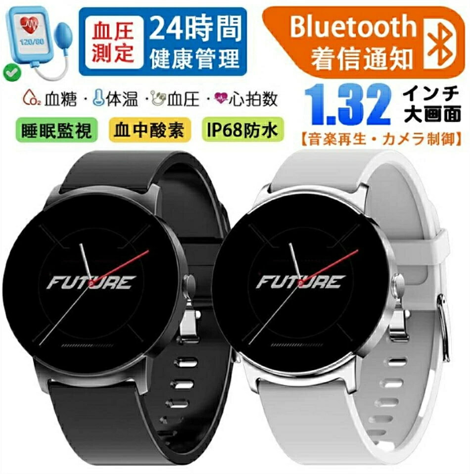 スマートウォッチ 血糖値 血圧測定 ECG心電図 血中酸素 心拍数 通話機能 体温 睡眠 計歩 生理管理 尿酸 血中脂質 呼吸 着信通知 音楽・カメラ制御 天気 体脂肪率