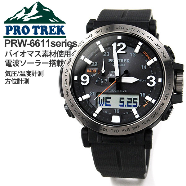 プロトレック ソーラー 電波時計PRW-6611Y-1JF 52,0 CASIO PRO TREK カシオ 腕時計 メンズトリプルセンサー 方位 気圧 / 高度 温度 計測 表示 バイオマス素材使用 アウトドアウォッチ 防水