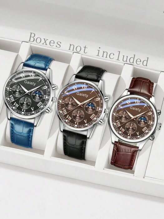 [ 8日から12日程度でお届け予定 ] 腕時計 メンズ セット ファッション メンズ腕時計セット 3個入り ビジネス レトロ ローマ数字 デジタルスケール 円形ダイヤル クォーツ腕時計セット 日常の服装に合わせやすい 友人やお父さんへの素敵なギフトに