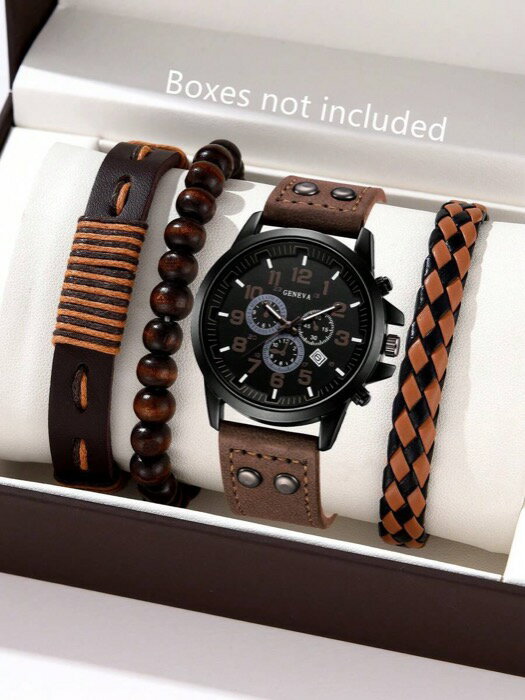 [ 8日から12日程度でお届け予定 ] 腕時計 メンズ セット メンズ腕時計 4個セット、ブラックケース、ブラウンデジタルスケール、ビジネス、レジャー、スポーツ、カレンダー付き、デイリー使いに最適、腕時計ブレスレットセット、彼氏への贈り物に最適