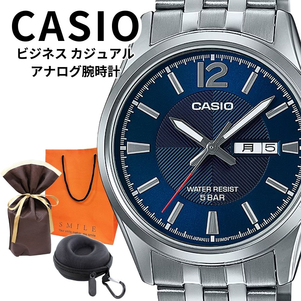 ラッピング済 ギフトセット 正規品 カシオ スタンダード 腕時計 メンズ 収納ケース付き アナログ 日付 曜日表示 ステンレス 防水 ブルー シルバー ビジネス フォーマル 男性 ギフト プレゼントに最適 クリスマスプレゼント ランキング お祝い