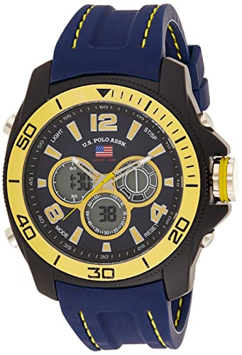 腕時計 ユーエスポロアッスン メンズ US9282 U.S. Polo Assn. Men’s Sport Watch with Analog-Digital Display, Silicone Band with Silver Links, 44mm Metal Case, Alarm, Backlight, Dual Time, Buckle Closure腕時計 ユーエスポロアッスン メンズ US9282