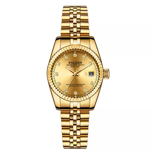 腕時計レディース金色ステンレスベルトカレンダー:3ATM防水おしゃれアナログ表示日本製クォーツ時計ゴールドレジャービジネスレディースファションアクセサリー-誕生日記念日クリスマ…