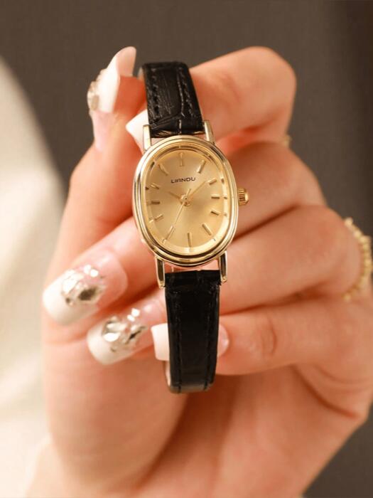 [ 8日から12日程度でお届け予定 ] 腕時計 レディース クォーツ レディース腕時計、楕円形ダイヤル PUストラップ、ヴィンテージ クラシック ビジネス レディース クォーツ腕時計。日常使いに最適、誕生日やホリデーギフトに最適 (箱なし)