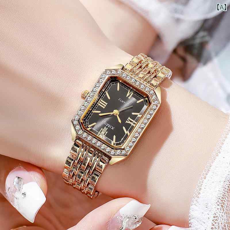 腕時計 レディース 韓国風 ファッション ウォッチ 合金 ラインストーン スクエア フェイス ブラック ホワイト パープル グリーン ブルー