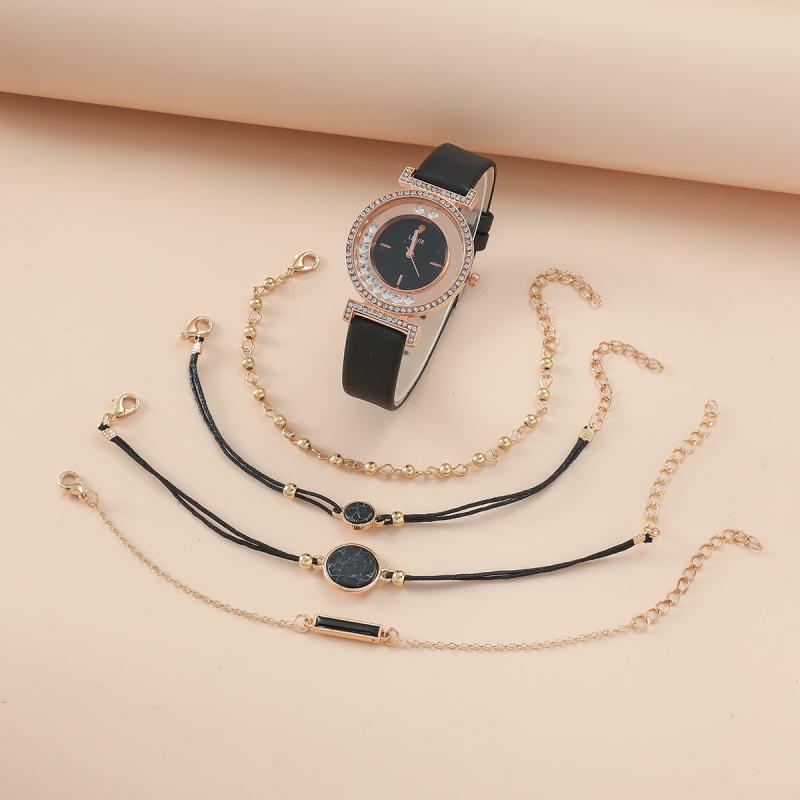 腕時計 レディース ファッション ブレスレット セット 韓国風 おしゃれ かわいい キラキラ 飾り文字盤 アナログ クォーツ時計 普段使い アクセサリー 合金 フェイクレザー
