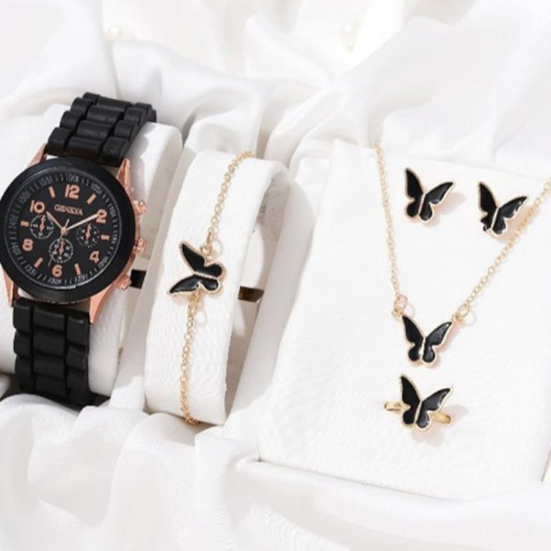 腕時計 レディース 女性用 韓国風 高級感 シンプル クラシック シリコンバンド アナログ ファッション ウォッチ ブレスレット セット ホワイト系