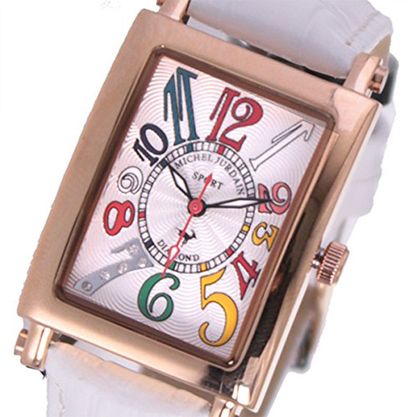 【無料特典付き!】ミッシェルジョルダン スポーツ 時計 レディース 腕時計 手表 ローズゴールドケース 白 ホワイト レザー ダイヤモンド カラフル 長方形型 革 SL-3000-6PG 時計 誕生日 ギフト 記念日 クリスマスプレゼント ランキング お祝い