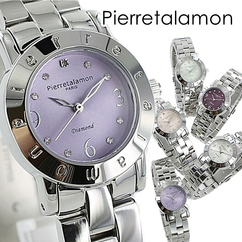 女性 母親 レディース 腕時計 小ぶり 小さい ピエールタラモン 記念日 プレゼント 彼女 社会人 誕生日 ブレスレットウォッチ シルバー 時計 贈り物 選べる5カラー ★フランス生まれのブランドPIERRE TALAMON(ピエール・タラモン) 女性の腕元を素敵に飾る品のあるレディースウォッチです。 スタイリッシュなフォルムに淡い色合いのカラーリングが印象的なデザイン。 天然ダイヤモンド入りのクリスタルインデックスがアクセントに。 袖口の邪魔にならない小ぶりなケースです。 ビジネスシーンやフェミニンな洋服にはもちろん、ラフなカジュアルな装いにワンポイントとして合わせても可愛いアイテムです。 ◎ご自分へのご褒美に! ◎女友達の誕生日のお祝いに。 ◎娘、姪っ子のお祝い、妻、母の日のプレゼントに。 ◎お世話になっている大切な方へ。 ◎ずっと使って欲しいプレゼントに。 ◎日常的に使える腕時計は贈り物にもおすすめです。 ■ブランド:PIERRE TALAMON(ピエール・タラモン) ■クオーツ(電池式) ■電池交換・ベルト調整について:量販店の時計売り場や最寄りの腕時計店で可能なモデルです。 ■防水性:日常生活防水 ■文字盤カラー:シルバー/ワインレッド/グリーン/パープル/ピンク ■サイズ(約) 時計の幅:26mm ベルト腕周り:最短13cm~最長17cm ■ブランド専用BOX ※ブランドBOXは入荷月によって異なる場合がございます。予めご了承くださいませ。 ■保証期間:1年間 PT-3000-1 PT-3000-2 PT-3000-3 PT-3000-4 PT-3000-5