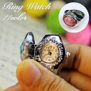 送料無料 リングウォッチ 指輪時計 カバー付 フィンガーウォッチ ラウンドフェイス アナログ アラビア数字 個性的 ユニーク アクセサリー 指とけい