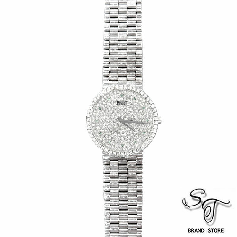 ■PIAGET■ピアジェピアジェ /9066 N G 2/手巻き/18K WG/ダイヤモンド/ 12Pエメラルド文字盤/レディース時計/重量約86.5g【中古A】