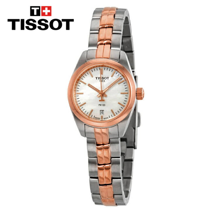 商品情報商品について※※※必ずお読みください※※※※商品の配送状況などにより、外箱の潰れや容器の凹み、汚れなど外観に傷みのある商品も含まれますが、商品自体に問題はございませんので、ご安心ください。※生産国の違いやリニューアルなどに伴い掲載画像と異なる商品の場合がございます。※予告なく原産国表記が変更となる場合があり、商品説明等と異なることがございます。●上記理由での返品・交換はお受けできません。あらかじめご了承ください。配送について・当店でご購入された商品は、原則として、「個人輸入」としての取り扱いになり、アメリカまたはギリシャからお客様のもとへ直送されます。・当店はアメリカ合衆国に所在する事業者であるためお客様の注文情報は当店が所在するアメリカ合衆国へ移転いたします。注文情報の移転について同意いただいた上でご注文ください。・通関時に関税・輸入消費税が課税される可能性があります。・課税額はご注文時には確定しておらず、通関時に確定しますので、商品の受け取り時に着払いでお支払いください。・個人輸入される商品は、全てご注文者自身の「個人使用・個人消費」が前提となりますので、ご注文された商品を第三者へ譲渡・転売することは法律で禁止されております。・一部商品は国内の提携先倉庫から配送されます。・国内配送の商品は国内でのお買い物と同じく消費税が発生いたします。関税はかかりません。・国内配送の商品は他の商品と同梱不可になります。・商品お届けまでに、海外からの配送は3週間程度、国内配送の場合は10日程度かかります。TISSOT ティソ T-クラシック マザーオブパールダイヤル ツートーン レディースウォッチ T-Classic Mother of Pearl Dial Two-tone Ladies Watch どのようなシーンでも着用できるタイムピース 商品説明ステンレススティール製ケース、2トーン(シルバートーンおよびローズゴールドPVD)ステンレススティール製ブレスレット。ローズゴールドPVDの固定ベゼル。マザーオブパールダイアル、ローズゴールドトーンの針とインデックスアワーマーカー。外周にミニッツマーカー。文字盤タイプ: アナログ。6時位置に日付表示。クオーツムーブメント。傷のつきにくいサファイアクリスタル。プル/プッシュ式リューズ。ソリッドケースバック。ラウンドケース形状。ケースサイズ:25ミリメートル。ケースの厚さ:6.9ミリメートル。バンド幅:12ミリメートル。プッシュボタンリリース付きフォールドオーバークラスプ。100メートル/ 330フィートで防水。機能:日付、時、分、秒。T-classicシリーズ。カジュアルな時計スタイル。時計のラベル: スイスメイド。ティソ T-クラシック マザーオブパールダイヤル ツートーン レディースウォッチ T1010102211101。 2