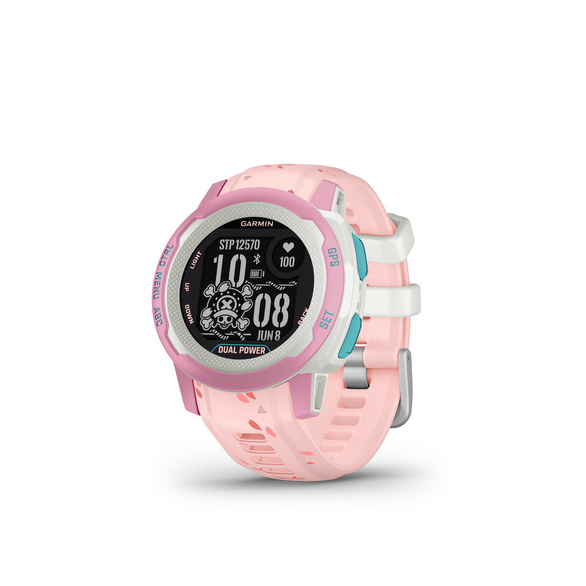 [型番:010-02564-B3]ソーラー充電機能を備えた「Instinct2S Dual Power」を、その優れた機能性と操作性はそのままに、コミック、アニメーション、映画などメディアを超えて、子供から大人まで幅広い世代に絶大な人気を誇る「ONE PIECE」とのコラボレーションによるオリジナルデザインで限定発売します。『Instinct 2S Dual Power ONE PIECE Chopper』は、「麦わらの一味」の船医、人間トナカイの「トニートニー・チョッパー」モデル。チョッパー帽子のカラーをイメージし、バンドにはチョッパーのシンボルマークにも使われるDr.ヒルルクの桜のモチーフをあしらいました。チョッパーモデルは、ベゼル・バンドサイズ共にやや小ぶりで女性の腕にも馴染むサイズです。宝箱をモチーフにした特別BOX仕様。ここだけでしか手に入らない限定のキャラクターステッカーと時計スタンドを同封しています。※互換性のあるスマートフォンとのペアリングが必要です。※血中酸素トラッキングによる測定は、医療目的で使用されることを意図するものではなく、あくまで一時的なフィットネスとウェルネスの範囲で利用することを目的とするものです。*GARMIN製品のサポートは、初期不良含め全てメーカーサポートで承っております。商品のサポートに関するお問い合わせはメーカーサポートへご連絡ください。■カラー:**■サイズ:40 x 40 x 13.3mm■重さ:43g※( )で表記されている数字はヌードサイズです。ヌードサイズとは衣服を身につけない身体のサイズです。お客様ご自身の身体サイズと比較してお選びください。 ■素材: ■ケース素材:繊維強化ポリマー■風防素材:Coming Gorilla Glass DX■バンド素材:シリコン■仕様:アウトドアスマートウォッチ・充電式(ソーラー/USB充電)・GPS搭載・3軸コンパス・気圧高度計・通知機能・電子決済機能(Garmin Pay/Suica対応)・ライフログ機能・トレーニング計画、分析機能・心拍計機能・ランニング機能・アウトドアレクリエーション機能・サイクリング機能・スイム機能・ゴルフ機能・10気圧防水 ■お手入: >>商品のお取り扱い方法 ■原産国:Instinct 2S Dual Power Chopper 010-02564-B3/ガーミン(GARMIN)**画面上と実物では、多少色具合が異なって見える場合がございます。