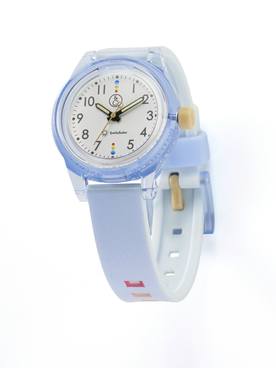[型番:R03A-001VK]【Q&Q SmileSolar】は、太陽光はもちろん室内の灯りでも充電が可能なメンテナンス不要のウオッチです。生産時の無駄を少なくしたエコ・フレンドリーでカラフルな色使いが楽しめるモデルです。人々をハッピーでポジティブな気分にする音楽やミュージックフェスティバルをイメージソースにデザインされたモデル。ダイアルはシンプルベーシックながら、バンドやリュ—ズ、12時と6時位置のカラフルポップな感じが着けてて楽しくなりそうな印象。スペックに関しても10気圧防水はもちろん、光発電“スマイルソーラー”を搭載しているので、電池交換が不要で室内のわずかな灯りでも駆動。1回のフル充電で約3.5ヶ月駆動するというから実用性も抜群。ベビーブルーのカラーが爽やかな1本です。小ぶりなサイズで女性にもお子様にもおすすめです。■カラー:**■ケースサイズ:径32mm 厚み 11.00mm※( )で表記されている数字はヌードサイズです。ヌードサイズとは衣服を身につけない身体のサイズです。お客様ご自身の身体サイズと比較してお選びください。 ■素材: ■ケース素材:ABS樹脂■風防素材:アクリル■ベルト素材:ポリウレタン樹脂■仕様:ソーラー(フル充電後約3.5ヶ月駆動)・10気圧防水 ■お手入: ムーヴでお買い上げの商品は初回電池交換(一部除外品有)・ブレスサイズ調整無料です。 >>商品のお取り扱い方法 ■原産国:Q&Q Smile Solar マッチングスタイル Series 002 R03A-001VK/キューアンドキュー スマイルソーラー(Q&Q Smile Solar)**画面上と実物では、多少色具合が異なって見える場合がございます。