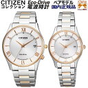 正規新品 日本製 ペアウォッチ CITIZEN COLLECTION PAIR/シチズンコレクション ペア エコドライブ ソーラー 国内電波 2本セット メンズ レディス ステンレス サファイアガラス 日付 シルバー×ピンクゴールド ローマ数字 AS1062-59A ES0002-57A