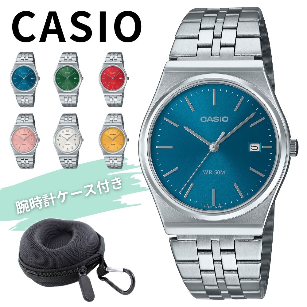 カシオ CASIO 腕時計 収納ケース付き メンズ レディース 男女兼用 ステンレスベルト デイト付き 50m防水 シンプル おしゃれ 日常使い ビジネス カジュアル 学生 社会人 プレゼント ギフト 時計 クリスマスプレゼント ランキング お祝い