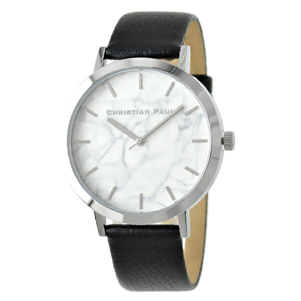 クリスチャンポール 時計 メンズ レディース 腕時計 手表 43mm ホワイトマーブル 大理石柄 ブラックレザー MR-05 ビジネス カップル ユニセックス 男女 時計 誕生日 ギフト 記念日 クリスマスプレゼント ランキング お祝い