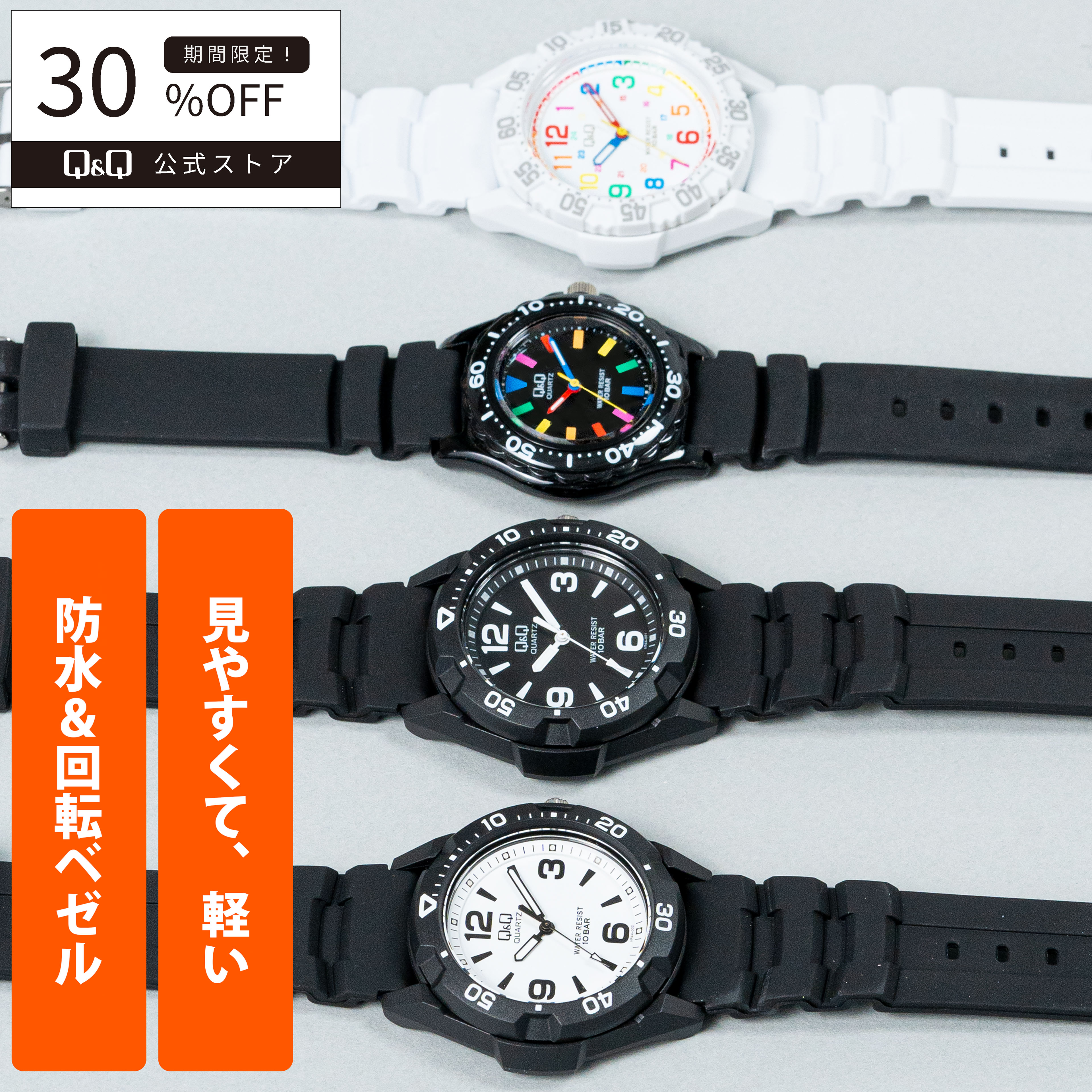 【Q&Q公式】 シチズン 軽い 10気圧防水 アナログ 見やすい シンプル カラフル ギフト 大人プレゼント メンズ レディース キッズ 新生活 小学生 中学生 高校生 ビジネス 仕事 アウトドア 海 川 レジャー 腕時計 受験 試験