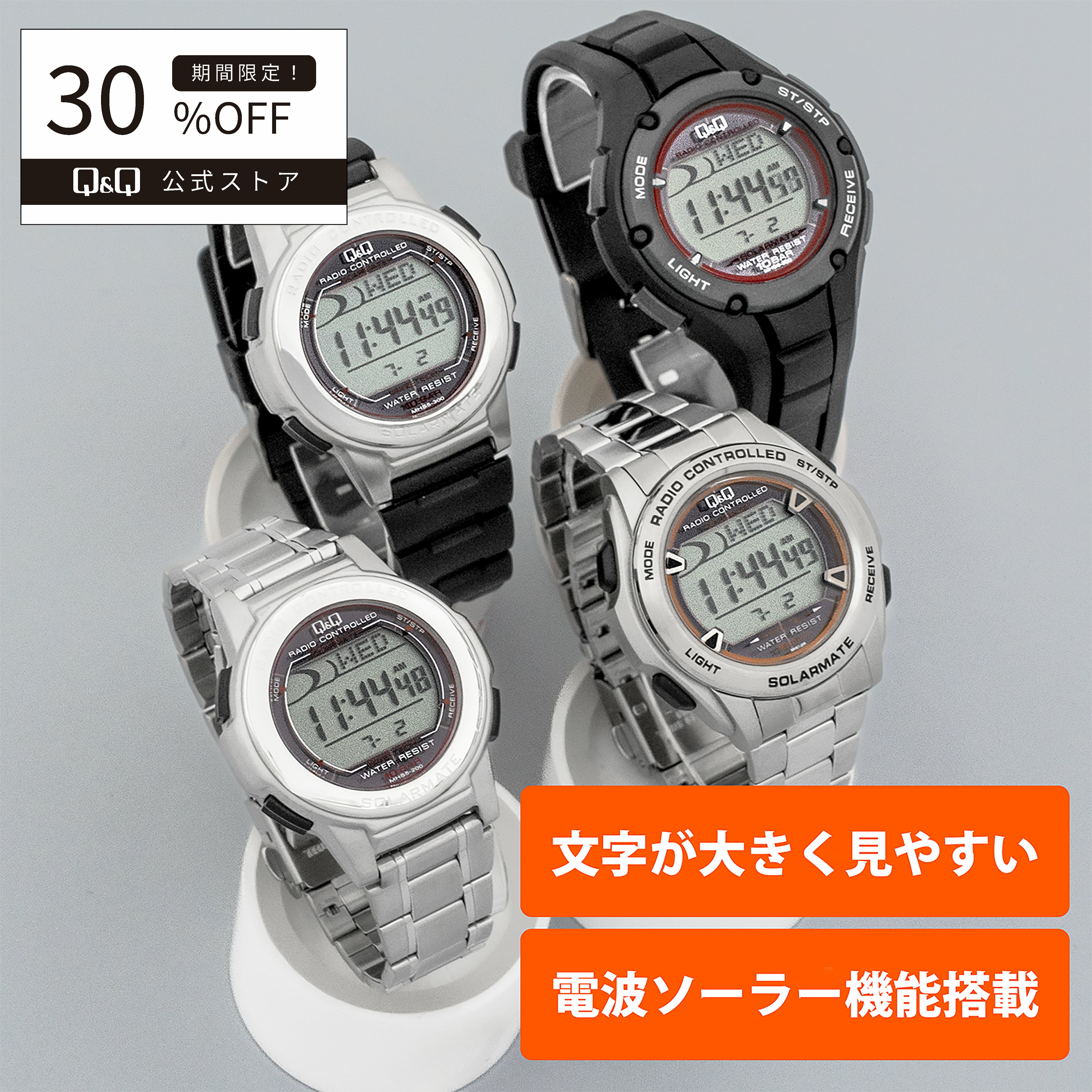 【Q&Q公式】シチズン 腕時計 電波 ソーラー デジタル MHS 10気圧防水 メンズ レディース キッズ 中学生 高校生 大学生 学生 カジュアル ビジネス 仕事 アウトドア