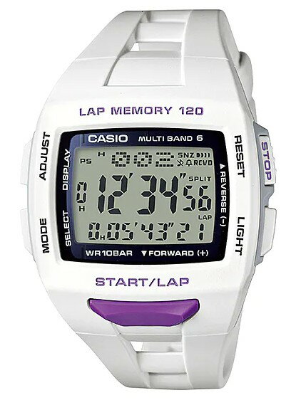 ■商品特徴 ソーラー電波機能を搭載した「 CASIO Collection」のスポーツモデルです。 電波受信機能は世界6局の標準電波に対応したマルチバンド6を搭載。 ラップ・スプリットタイムを最大120本までメモリー可能。 また、タイム計測中に計測時間と現在時刻を同時に表示することもできます。 大型ワイド液晶パネルや高輝度均一発光LEDの採用により、日中はもとより夜間での視認性も確保。 走行中でも操作しやすいフロントの大型LAPボタンなど、ランナーのニーズにマッチしたモデルです。 ケースサイズ(縦×横×厚さ)49 × 45 × 11.6 mm 質量 46 g ケース・ベゼル材質 樹脂 樹脂バンド 防水性 10気圧防水 時刻修正 電波時計 日本・北米・ヨーロッパ・中国地域対応 MULTIBAND6 使用電源・電池寿命 タフソーラー(ソーラー充電システム)