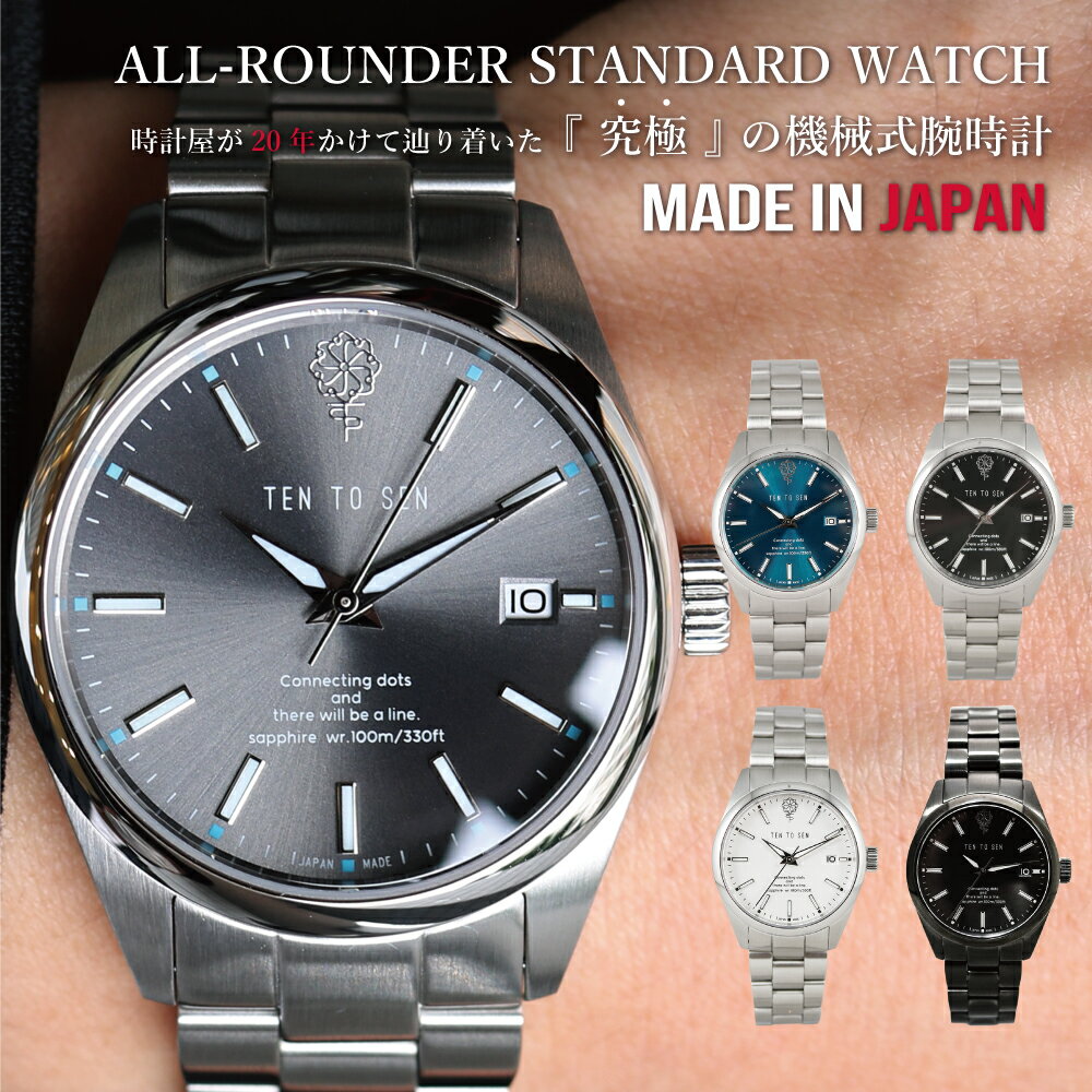 TEN TO SEN テントセン腕時計 時計 メンズ 機械式 自動巻き 手巻き 薄型 アナログ 日本製 カレンダー ステンレス メタル シルバー 1st STANDARD Makuake マクアケプレゼント ギフト 2年保証 送料無料