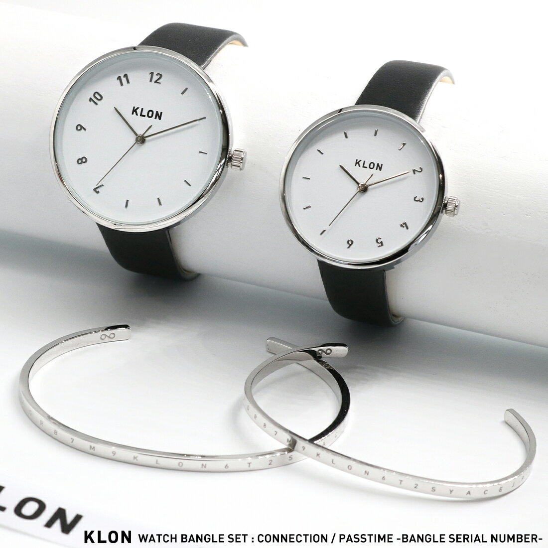 ペアウォッチ シルバー KLON 腕時計 ウォッチ メンズ レディース プレゼント ギフト 贈り物 デザイン デザインウォッチ ホワイト 白文字盤 ペア カップル おすすめ ディズニー 人気 シンプル 革ベルト レザー バングル セット KLON WATCH BANGLE SET