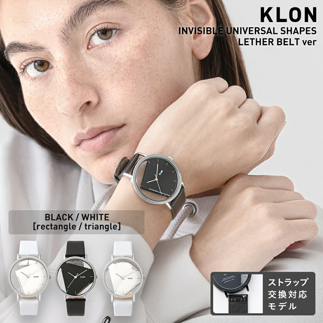 腕時計 透明 クリアウォッチ レザーベルト スケルトン 人気 ブランド モノトーン 黒 白 個性的 デザイナーズ おしゃれ シンプル メッシュベルト メンズ レディース ユニセックス KLON INVISIBLE UNIVERSAL SHAPES -BLACK&WHITE leather belt- 38mm