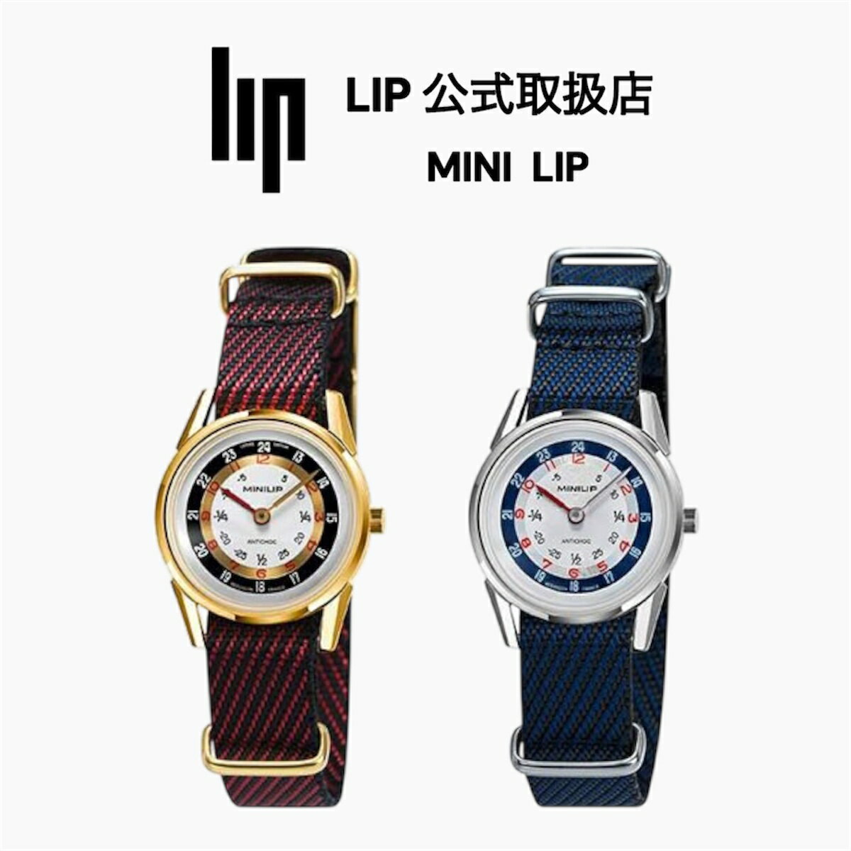 【お買い物マラソン|10%OFF+P5倍】正規品 LIP リップ 腕時計 メンズ レディース〈選べる2カラー〉Mini Lip ミニリップ NATOベルト|ゴールド レッド(671970) シルバーブルー (671971)