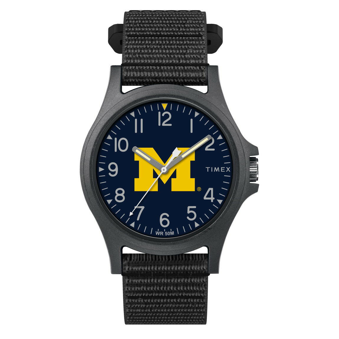 Timex ユニセックス Collegiate Recruit 38mm 腕時計 Michigan Wolverines ブラックファブリックストラップ
