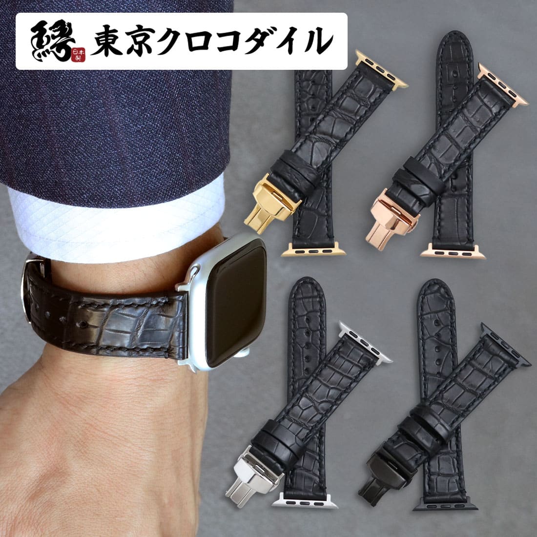 アップルウォッチ バンド Dバックル クロコダイル シリーズ11 10 ultra3 SE3 黒 ブラック 高級 日本製 メンズ レディース レザー 革 本革 おしゃれ Apple Watch Series ブランド ナイルクロコダイル 7 8 Ultra ウルトラ 38mm 40mm 41mm 42mm 44mm 45mm 46mm 49mm