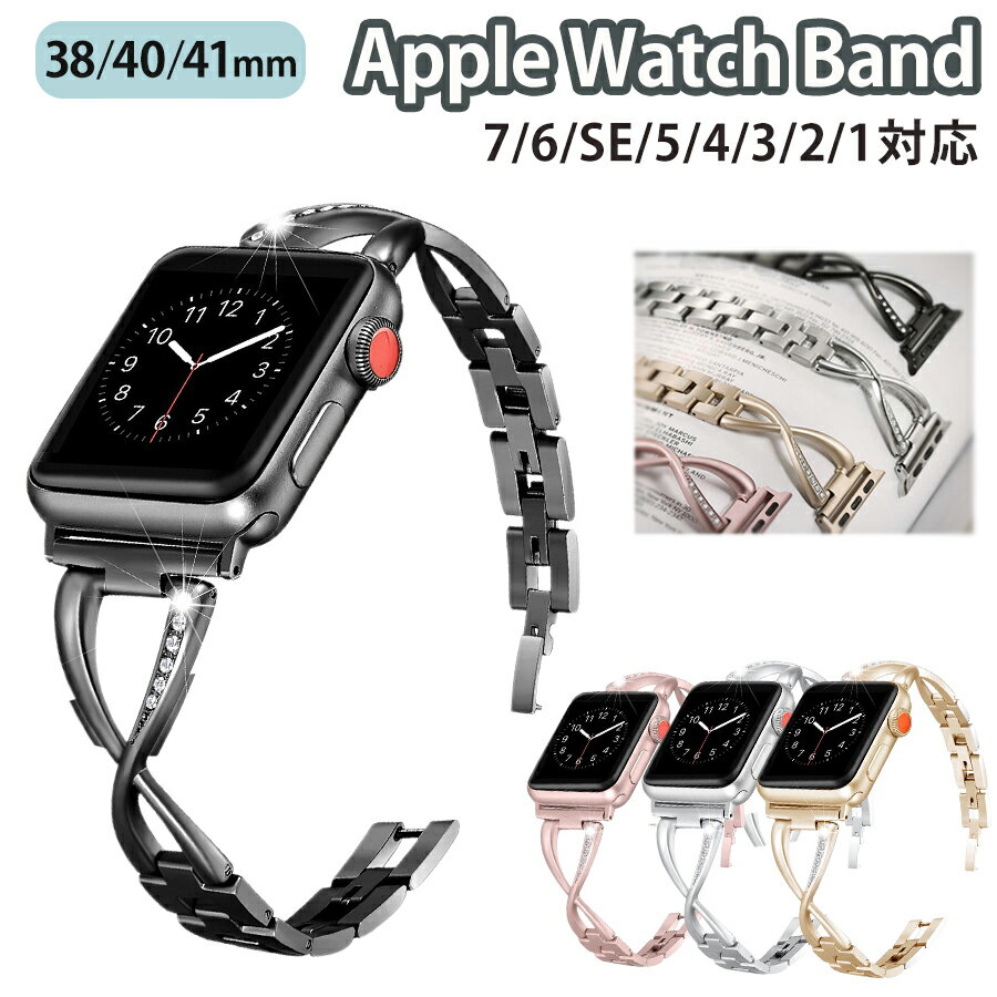 applewatch series 9/8/7/6/SE/5/4/3/2/1 (38mm/40mm/41mm) 対応 バンド ベルト スライド式 長さ調節可能 ビジネス レディース オフィスカジュアル クロスデザイン ラインストーン ビジュー 滑らか 華奢 上品 きれいめ 可愛い wa007-