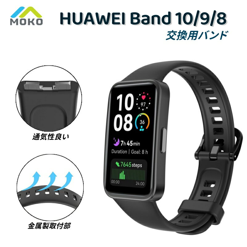 改良版 HUAWEI Band10 Band9 Band8 バンド ベルト 金属製取付部 MoKo HUAWEI スマートウォッチ バンド10 バンド9 交換ベルト ファウェイバンド 8 9 替えベルト ファーウェイ band 9 8 NFC 替えバンド シリコン 通気性 ソフト 取付簡単 軽量 耐久性 調整可能