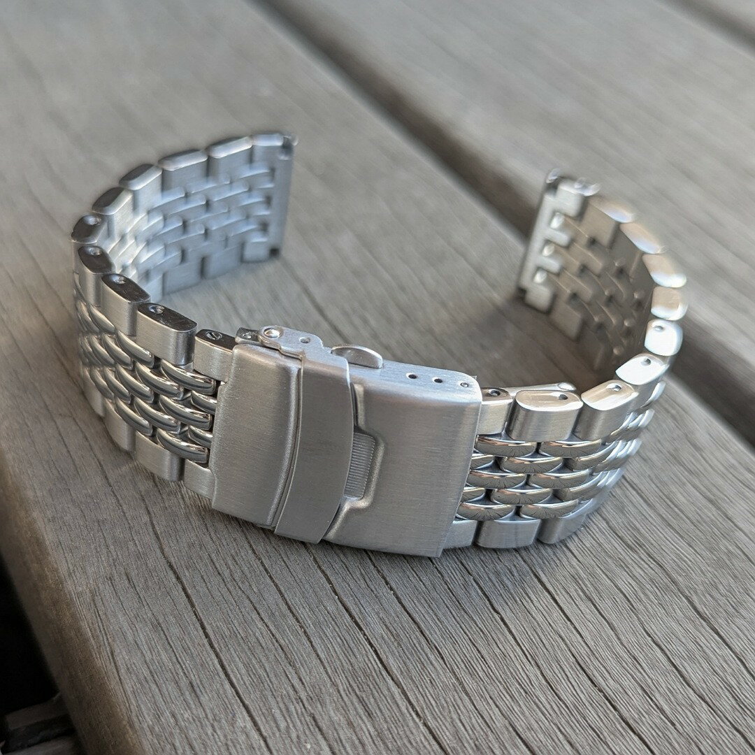 7連 無垢ステンレス Beads of rice ビーズオブライス ブラッシュ×ポリッシュ 無垢セーフティ付きDバックル シルバー 替えベルト 腕時計用 MOD カスタム