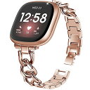 Fitbit Versa 4/Fitbit Versa 3/Fitbit Sense 2/Fitbit Sense 対応 バンド 金属ベルト ステンレス製 替えベルト 工具不要で長さ調節可能 交換用バンド レデイーズ ベルト(A-ローズゴールド)
