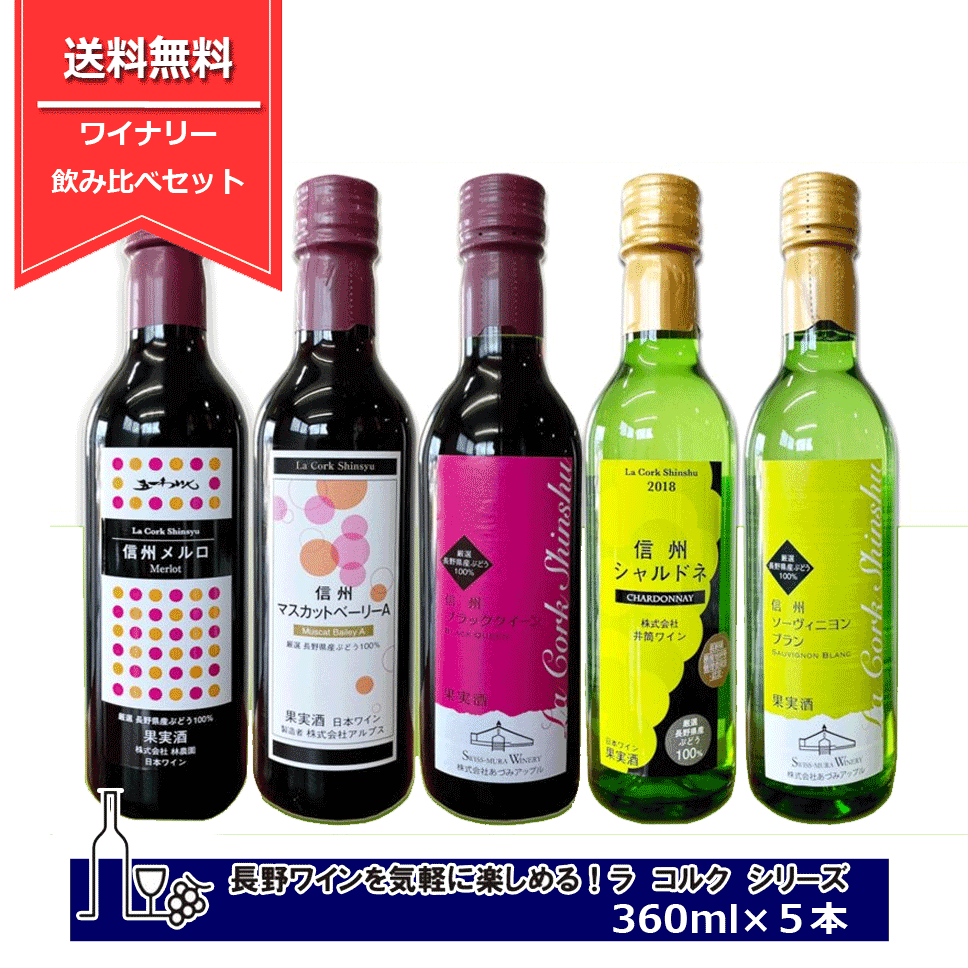 La Cork ラ コルク セパージュセレクション 5本セット 赤ワイン 白ワイン 360ml ×5 長野県産 ワイン ラコルク信州 長野ワイン セパージュワイン 飲み比べセット La Cork Shinshu NAGANO
