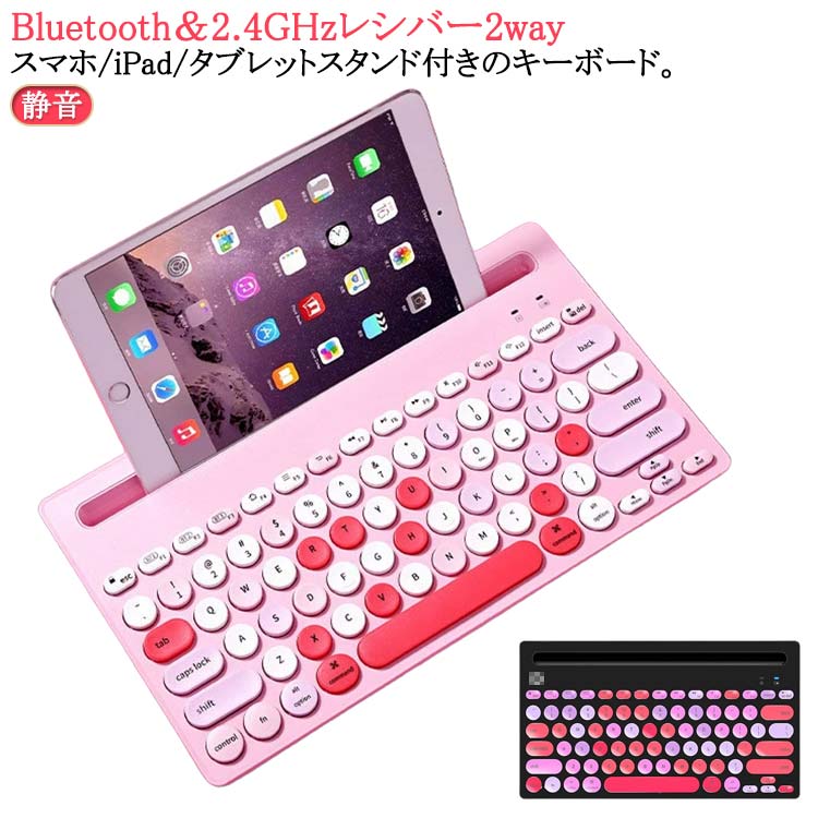 ワイヤレス キーボード Bluetooth レシバー付き 丸いキー かわいい おしゃれ カラフル スマホスタンド付き 電池式 無線 薄型 スリム 静音 小型 軽量 持ち運び ワイヤレスキーボー スマホ iPad タブレット パソコン PC Mac/Windows/Laptopに対応 女性用 【送料無料】