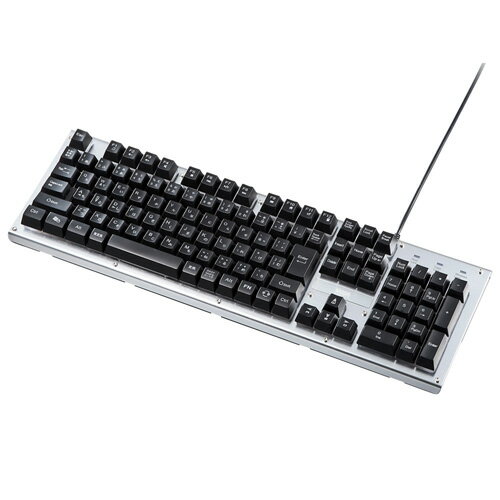 重厚感のあるメタルボディのバックライト搭載キーボード剛性の高いケースデザイン。メンブレンとは思えない極上のキータッチが味わえます。キーボードにバックライトを搭載。青・白・ライトパープル3色が切替可能ですキー入力してもキーボードがたわまない剛性のある構造ケーブルを接続したますべてのキーロック機能付きゲーミングキーボードとしても使える、「W・A・S・D」固定機能及び、Windowsキーロック機能付きゲームに使える特定のキーが19キー同時押し認識が可能です※同時押しに対応したキーは以下の通りです。Tab、Q、W、E、A、S、D、Z、X、C、B、スペース、矢印キー上下左右、Ctrl(左)、Alt(左)、Shift(左)●キー/キー表示:109キー日本語109A配列●インターフェース:USB●キースイッチ:メンブレン●キーピッチ:19mm(文字キー以外は除く)●キーストローク:4.0±0.5mm●動作力:55±10g●消費電流:100mA以下●対応OS:Windows10・8.1・8・7●対応機種:各社DOS/Vパソコン。ただし、USBポートを持ちパソコン本体メーカーUSBポートの動作を保証している機種備考