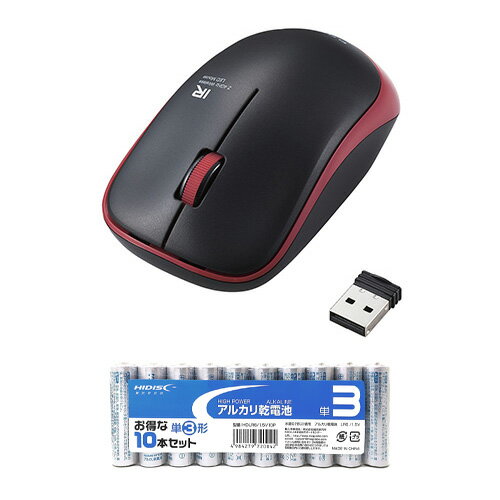 エレコム IRマウス/ENELOシリーズ/無線/3ボタン/省電力/静音ボタン/抗菌/レッド + アルカリ乾電池 単3形10本パックセット ASNM-IR07DRSKRD+HDLR6/1.5V10P|パソコン パソコン周辺機器 マウス