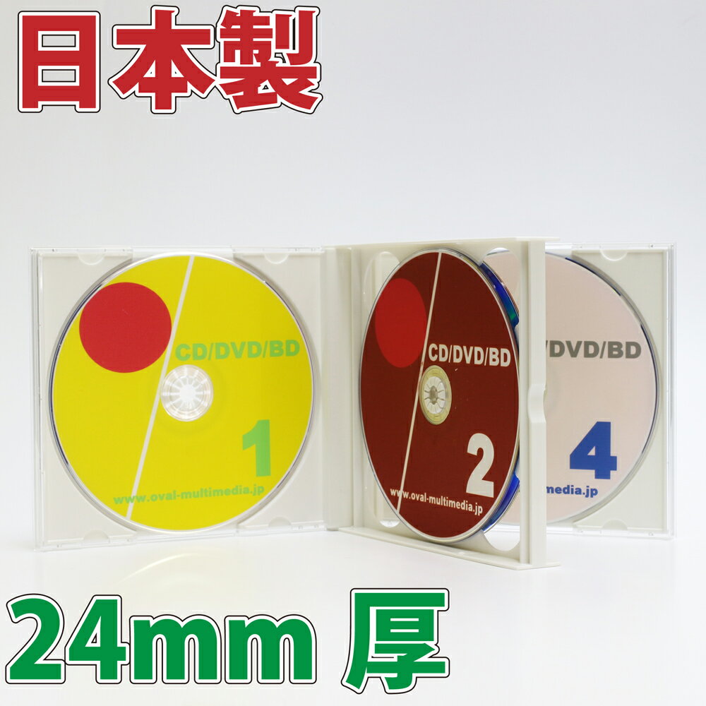 送料無料 日本製 CDケース 4枚収納 24mm厚マルチケース ホワイト 2個 ブルーレイケースとしても使える メール便配送 オーバルマルチメディア