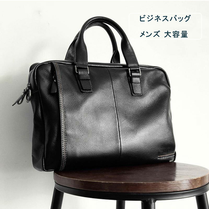 ビジネスバッグ メンズ 本革 牛革 レザー 防水 PC収納 パソコンバッグ 大容量 通勤 出張 会議 営業 ブラック 韓国ファッション 公文鞄 ブリーフケース