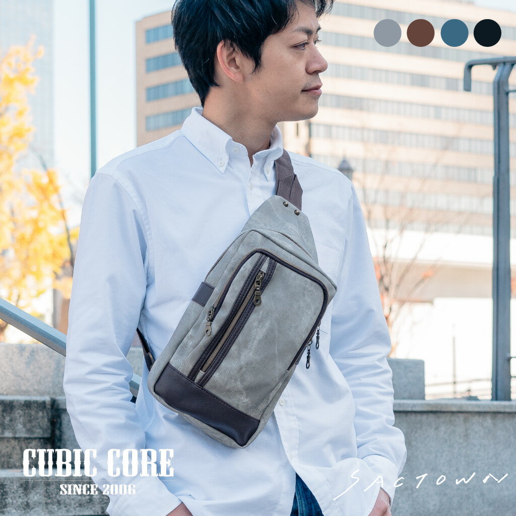 【1/24 20時〜★10%OFF】デニムPUボディバッグ 1856 [CUBIC CORE キュービックコア] ワンショルダーバッグ メンズ 人気 カジュアル 通学 鞄