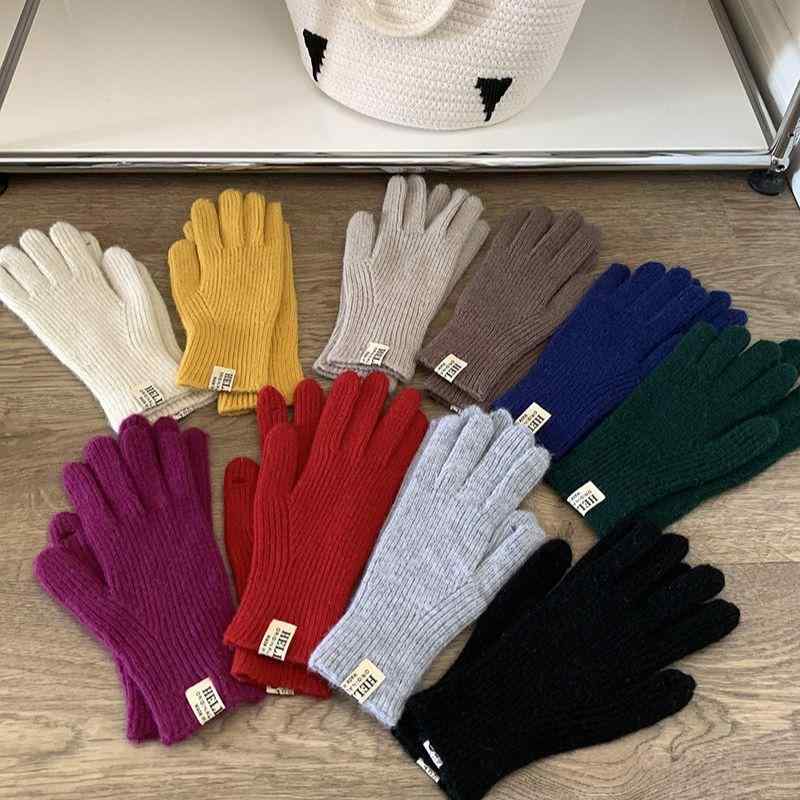手袋 レディース ニット グローブ 分指タイプ 秋冬 防寒 暖かい 無地 ウール混紡 カジュアル かわいい パープル ブラック ブルー オレンジ ベージュ ピンク グリーン