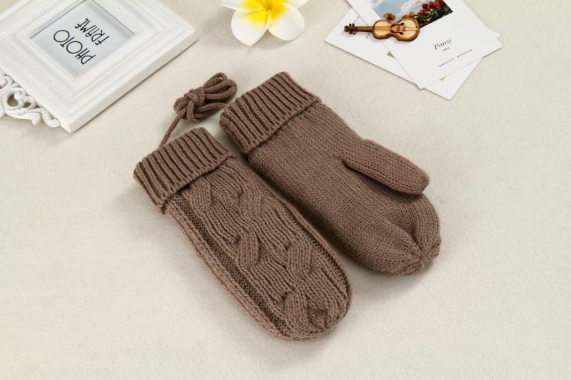 手袋 レディース ニット手袋 ミトン 厚手 裏起毛 ケーブル編み 防寒 無地 秋冬 ベージュ ブラック オフホワイト オレンジ ブラウン2