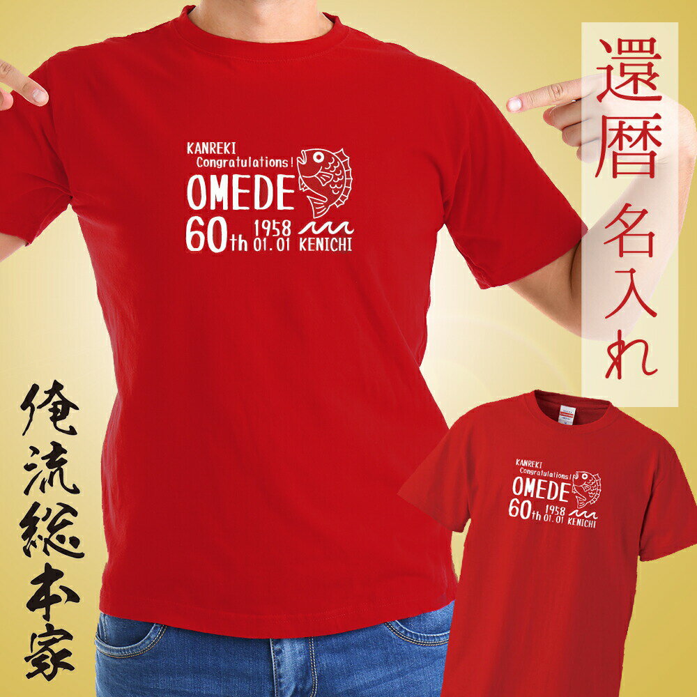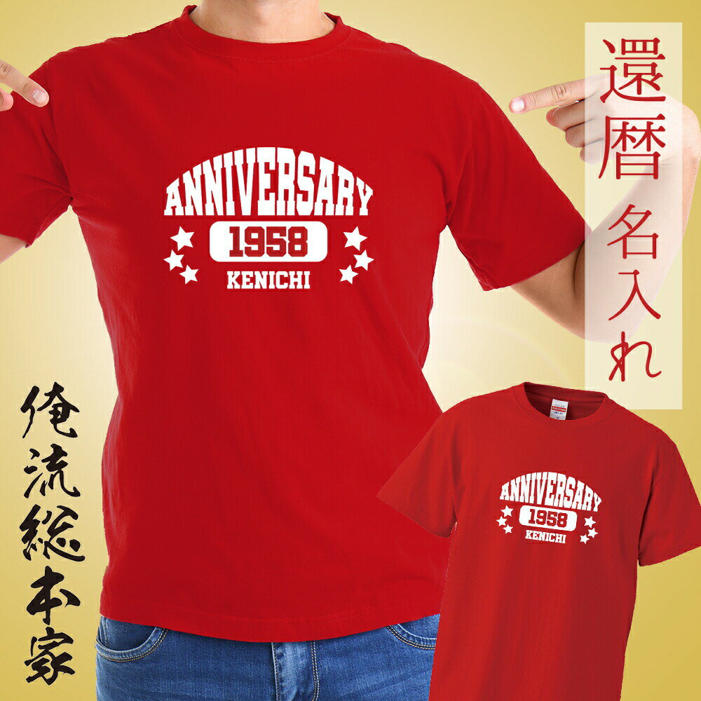 【 おもしろ プレゼント 還暦祝い 】 名入れ tシャツ 名入れ-還暦Tシャツ アメカジ風 アニバーサリー Tシャツ 名入れ-還暦Tシャツ60thバースディ【名入れ お祝い 還暦 tシャツ 赤 男性 女性 父 母 シャツ プリント 名前入り 誕生日 ギフト】