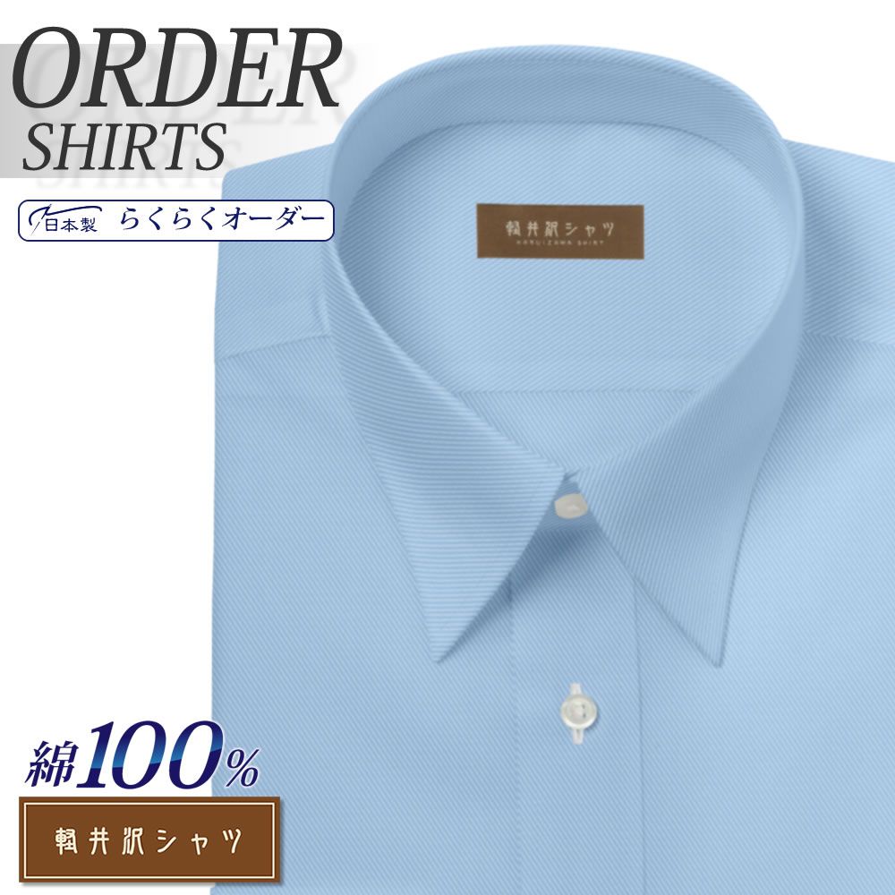 オーダーシャツ デザイン変更可能 ワイシャツ Yシャツ オーダーワイシャツ メンズ 長袖 半袖 七分 大きいサイズ スリム らくらく オーダー 日本製 形態安定 綿100% 軽井沢シャツ レギュラーカラー ライトブルーカルゼドビー [R10KZR542] 送料無料