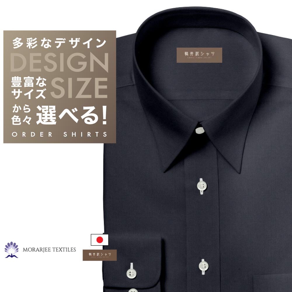 オーダーシャツ デザイン変更可能 ワイシャツ Yシャツ オーダーワイシャツ メンズ 長袖 半袖 七分 大きいサイズ スリム らくらく オーダー 日本製 綿100% 軽井沢シャツ レギュラーカラー 「MORARJEE」 ブラックツイル [R10KZR754] 送料無料