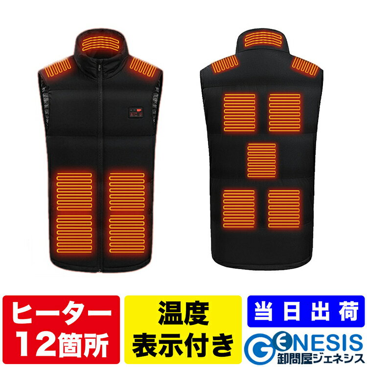 【スーパーセール対象店舗】2218 GSPOWERヒートベスト 電熱ベスト USB式給電 12箇所発熱 3段階温度調整 電熱ウェア 防寒ベスト ヒートベスト ヒーターベスト バイク アウトドア 防寒ウェア 作業着 水洗い 防風 チョッキ 防寒着 冬 男女兼用 温度表示