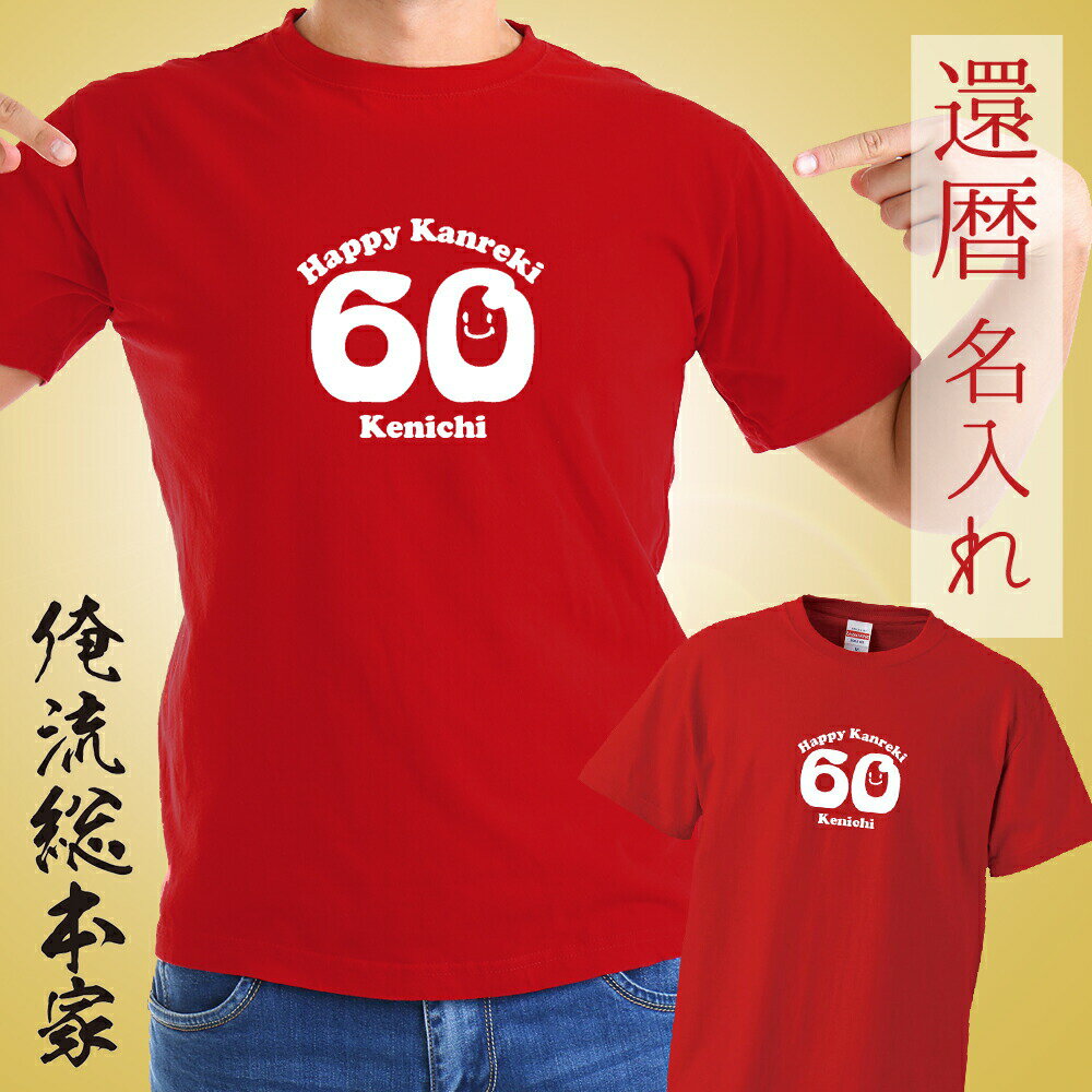 【 俺流総本家 】オリジナル 名入れ tシャツ 名入れ-還暦Tシャツにこちゃん【還暦 コスプレ 衣装 子供 大人 コスプレ 仮装 おもしろ 大きいサイズ プレゼント 名前ないれ 名前入れ Tシャツ tシャツ オリジナルプリント 大きいサイズ】