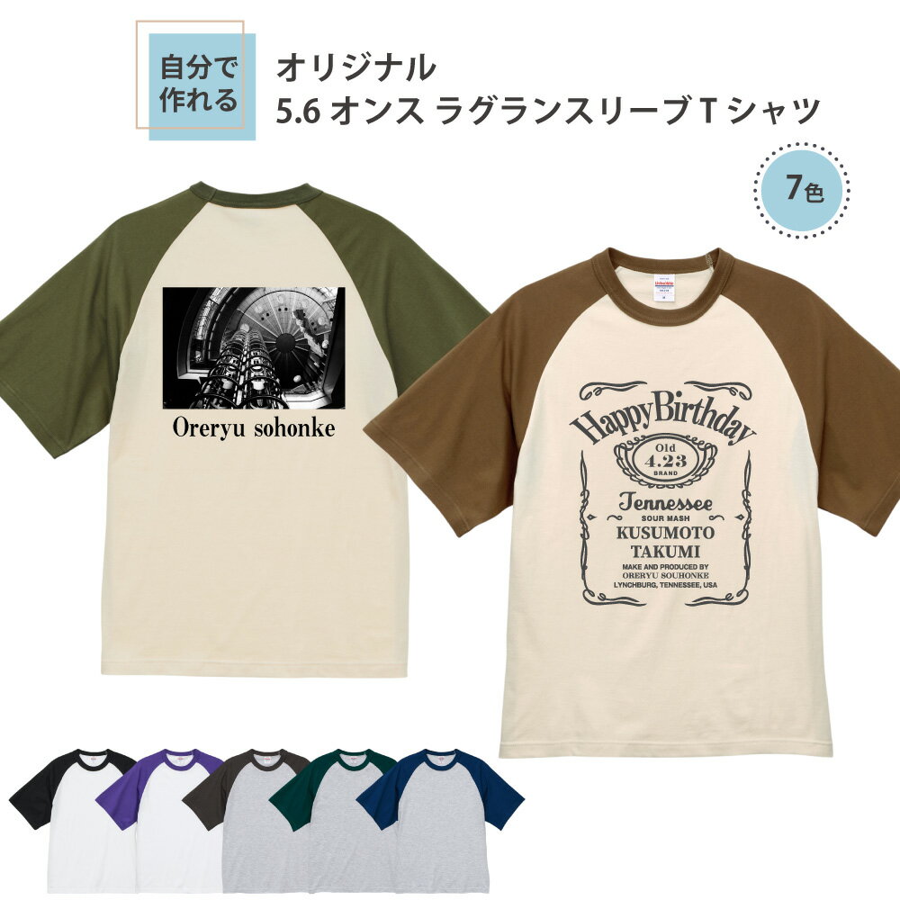 【 追加料金無し マホで名入れ!オリジナルTシャツ が1枚から作れる 】俺流デザイナー 5.6オンス ラグラン スリーブ Tシャツ(両面プリント)【 おもしろ ギフト オリジナル tシャツ グッズ パロディ 写真 ロゴ 自由 プリント 名入れ プレゼント 面白 アメリカン 半袖 】