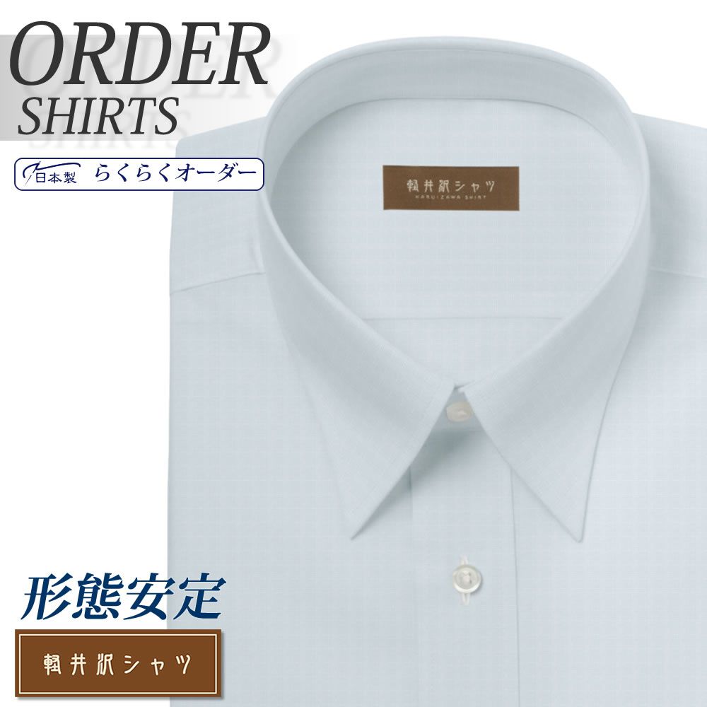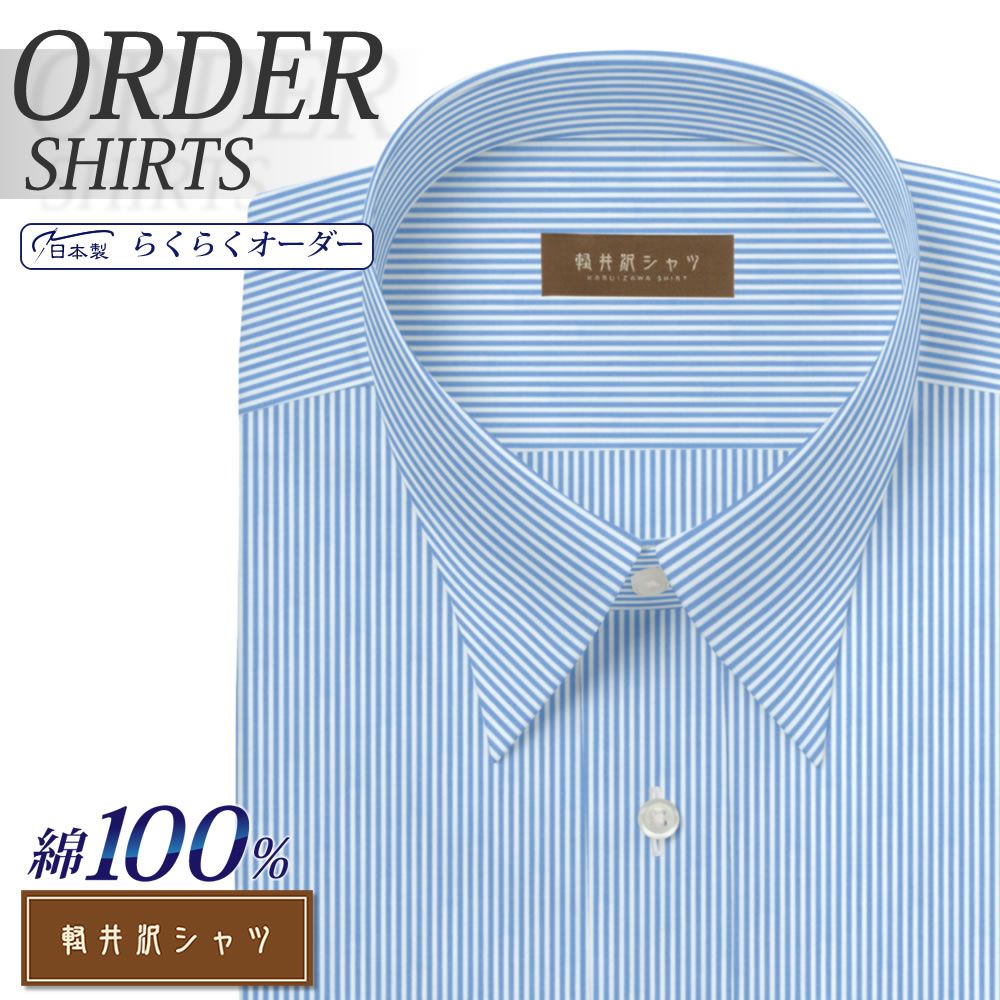 オーダーシャツ デザイン変更可能 ワイシャツ Yシャツ オーダーワイシャツ メンズ 長袖 半袖 七分 大きいサイズ スリム らくらく オーダー 日本製 形態安定 綿100% 軽井沢シャツ レギュラーカラー ライトブルーロンドンストライプ [R10KZR545] 送料無料